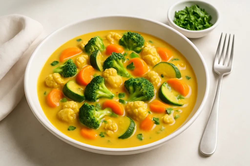 Ce curry de légumes au lait de coco est la parfaite incarnation de la cuisine inclusive. Naturellement sans gluten, végétarien et adaptable selon vos goûts, il rassemble autour de la table tous les convives, quelles que soient leurs restrictions alimentaires. Les épices douces et le lait de coco créent une harmonie de saveurs accessible même aux palais les plus sensibles.