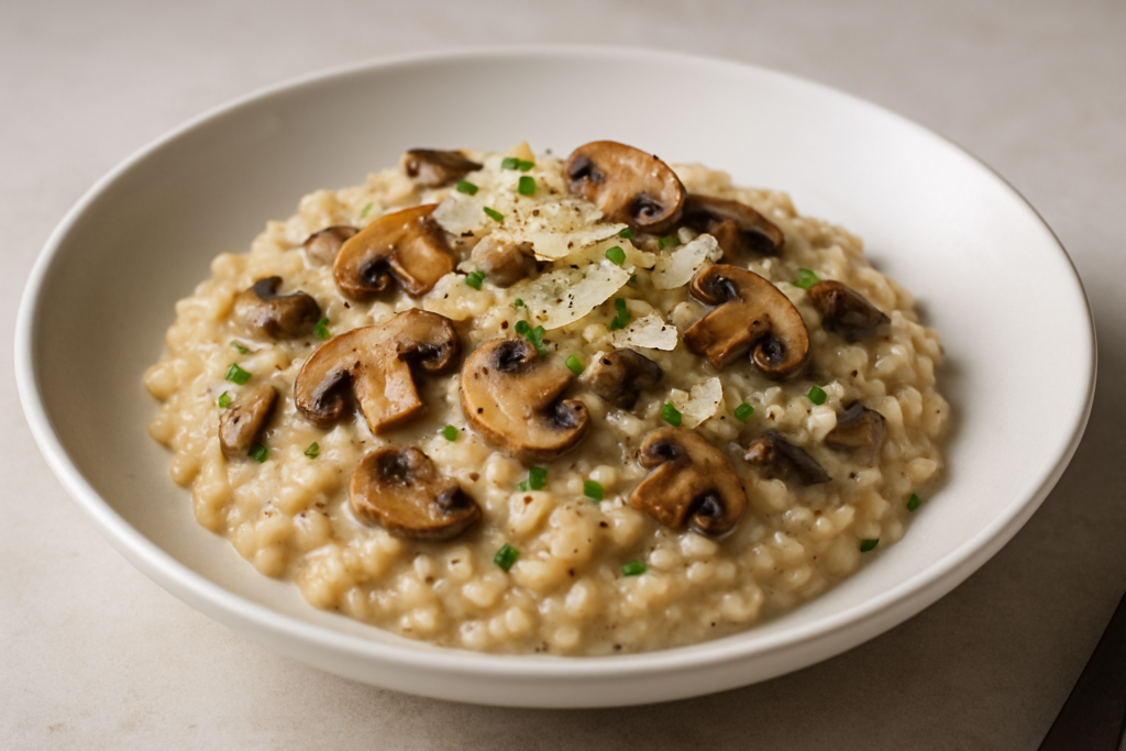 Ce risotto aux champignons sans gluten révèle toute la richesse de la cuisine italienne traditionnelle. Préparé avec du riz arborio naturellement exempt de gluten, ce plat onctueux marie parfaitement les saveurs boisées des champignons de Paris et des cèpes séchés avec la générosité du parmesan vieilli.